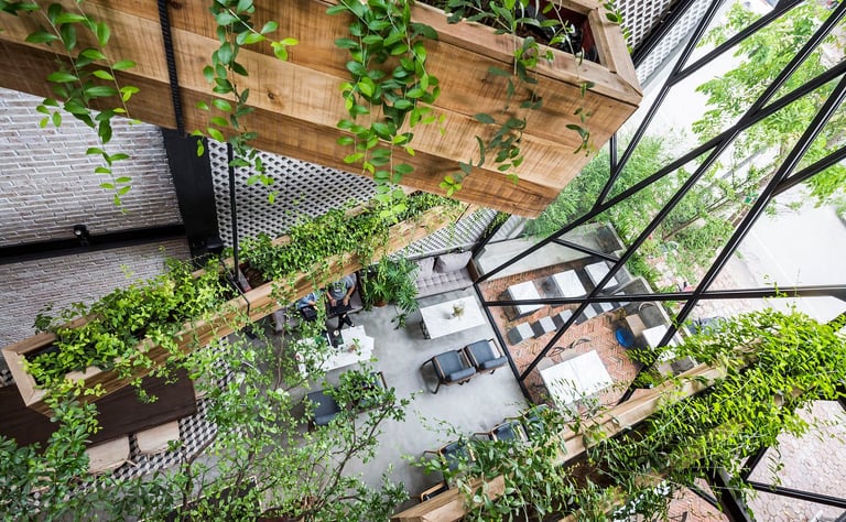 Không gian vườn treo mơ mộng giữa lòng Hà Nội – A dreamy hanging garden café rooted in industrial poetry and architectural renewal