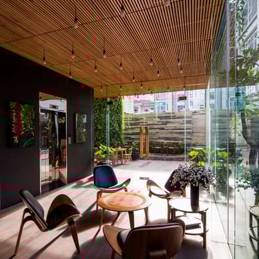 The architectural language is developed as a “living skin,” where glass, vegetation, and light interact dynamically to form a vibrant and breathing façade. Planted balconies are not mere decorative elements but integral visual components that allow the building to “breathe” in rhythm with nature. By completely opening the ground floor and mezzanine, the design invites sea breezes to flow naturally through the interior while allowing daylight to penetrate deeply, effectively dissolving the usual sense of confinement often found in alley-side developments.