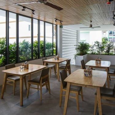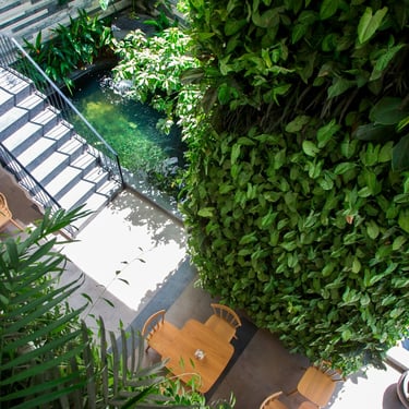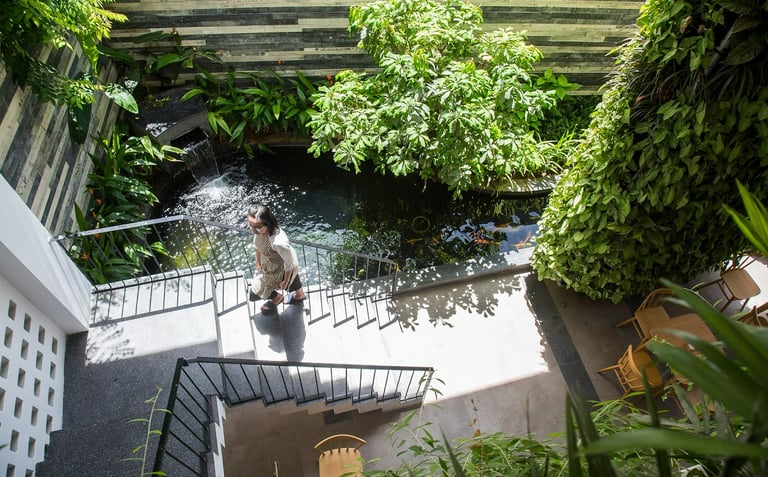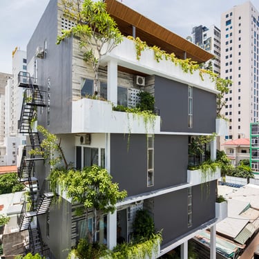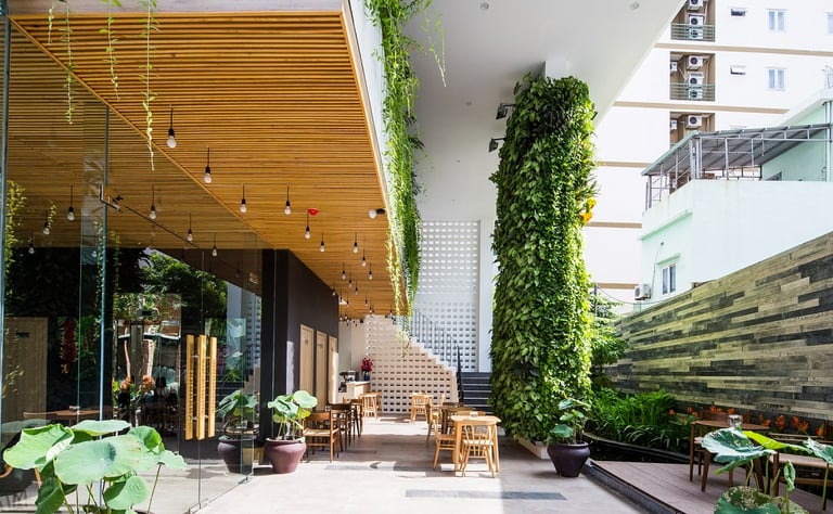 Hidden just off the vibrant pulse of Hà Bổng Street in Da Nang, Babylon Garden Condotel quietly establishes itself as a serene green sanctuary amid the rapid development of the coastal urban landscape. Located only a short walk from Mỹ Khê Beach, the six-storey boutique condotel designed by Ho Khue Architects in 2017 transforms a constrained site — enclosed on three sides by neighbouring buildings — into an emotionally rich hospitality space. Rather than competing through scale or flashy aesthetics, the project pursues a distinct path, placing tranquility and a profound connection with nature at its core.