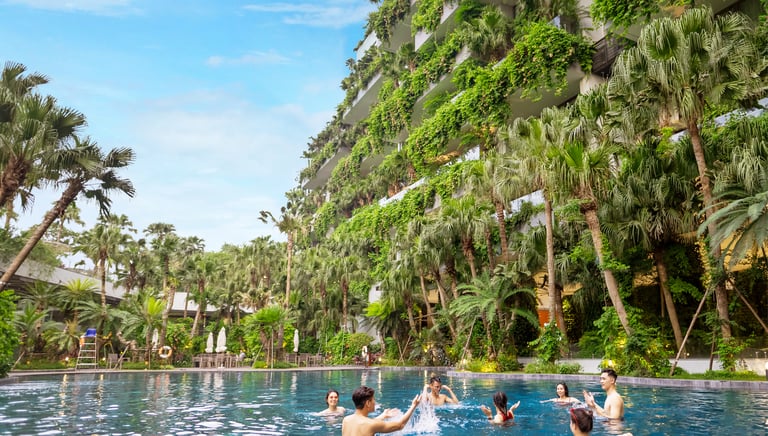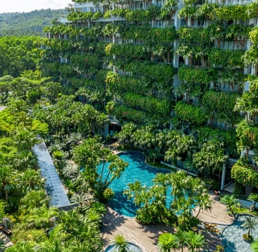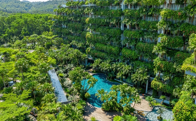 Rising proudly at the gateway of the Flamingo Dai Lai Resort, "Forest In The Sky" is aptly named. Surrounded by the majestic Tam Dao Mountain range, this 11-story architectural masterpiece is redefining eco-luxury in Vietnam, transforming a rural commune into a world-renowned destination for sustainable tourism.