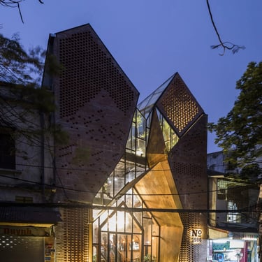 Giữa nhịp sống sôi động của thành phố cảng Hải Phòng, No.1986 Coffee & Restaurant hiện lên như một điểm dừng lặng đầy cảm xúc, nơi kiến trúc không chỉ phục vụ công năng mà còn kể một câu chuyện văn hóa giàu chiều sâu. Công trình do Le House thiết kế đã khéo léo khai thác hình ảnh chiếc khăn mỏ quạ – biểu tượng gắn liền với vẻ đẹp dịu dàng, kín đáo của người phụ nữ miền Bắc – để tái hiện trong một ngôn ngữ kiến trúc đương đại, vừa thân quen vừa mới mẻ.