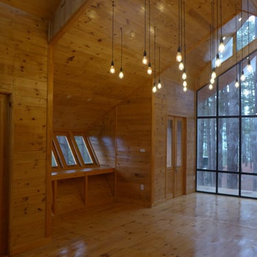 Khối văn phòng chính mở ra hướng rừng thông, tận dụng tối đa ánh sáng và không khí mát lành. Hệ cửa kính lớn kết hợp mái gỗ thông giúp điều tiết ánh sáng, đồng thời giữ được tầm nhìn thông suốt ra cảnh quan. Nhờ đó, không gian làm việc trở nên linh hoạt, gần như xóa nhòa ranh giới giữa bên trong và bên ngoài. Các khu vực làm việc riêng và không gian điều hành khép kín vẫn được bố trí hợp lý, đảm bảo sự riêng tư cần thiết mà không làm mất đi cảm giác kết nối chung.